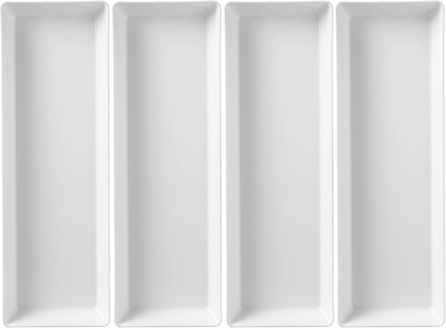 US Acrylic Avant White Plastic Serving Trays (Set of 4) 15” x 5” | Narrow Reusable Rectangular Party Platters | Serve Appetizers, Fruit, Veggies, & Desserts | BPA-Free & Made in USA(15″ x 5″)