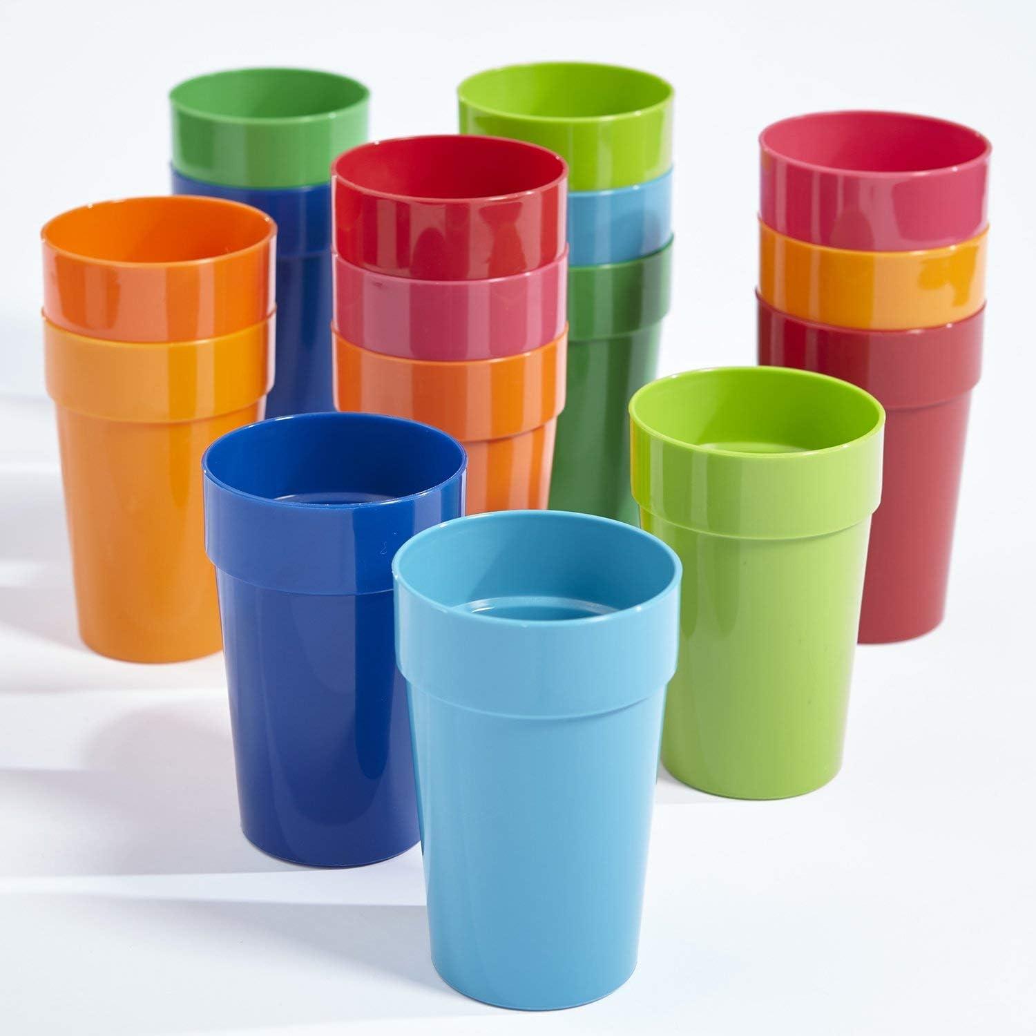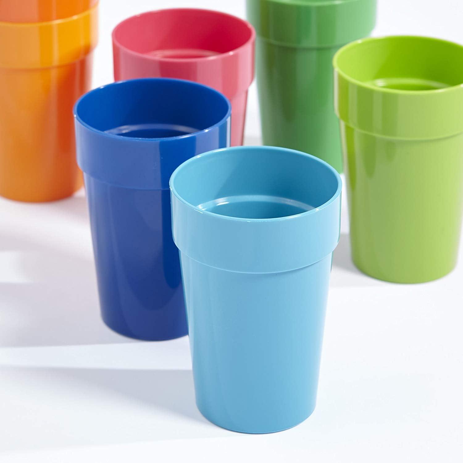 US Acrylic Spectrum Unbreakable Plastic 10 ounce Stackable Juice Tumblers in 8 Assorted Colors | Set of 16 Kids Drinking Cups | Reusable, BPA-free, Made in the USA, Top-rack Dishwasher Safe